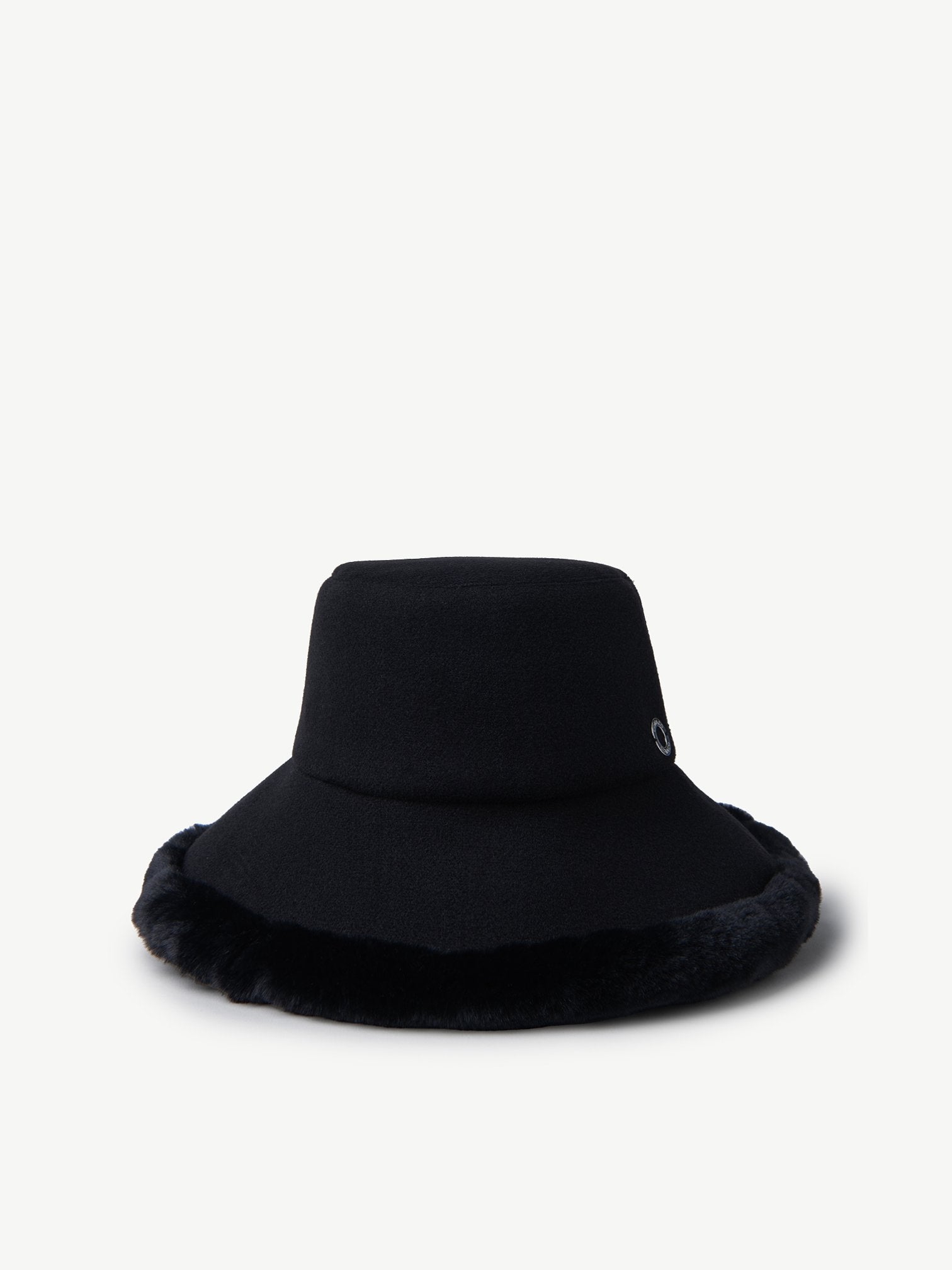 Combining Our signature bucket hat shape, cashmere wool fabric and black shearling, this hat is timeless piece, which can be worn in multiple ways and occasions.