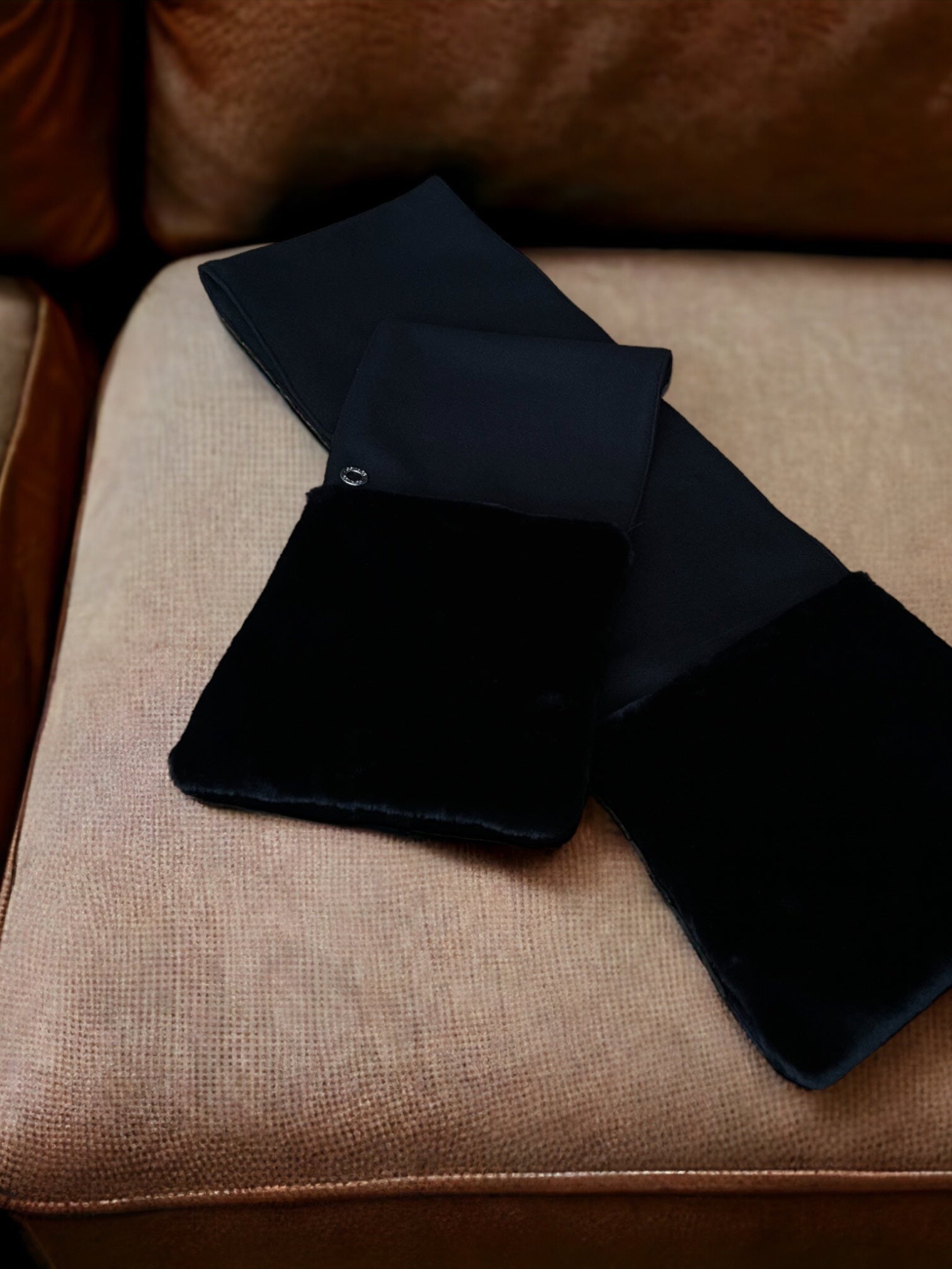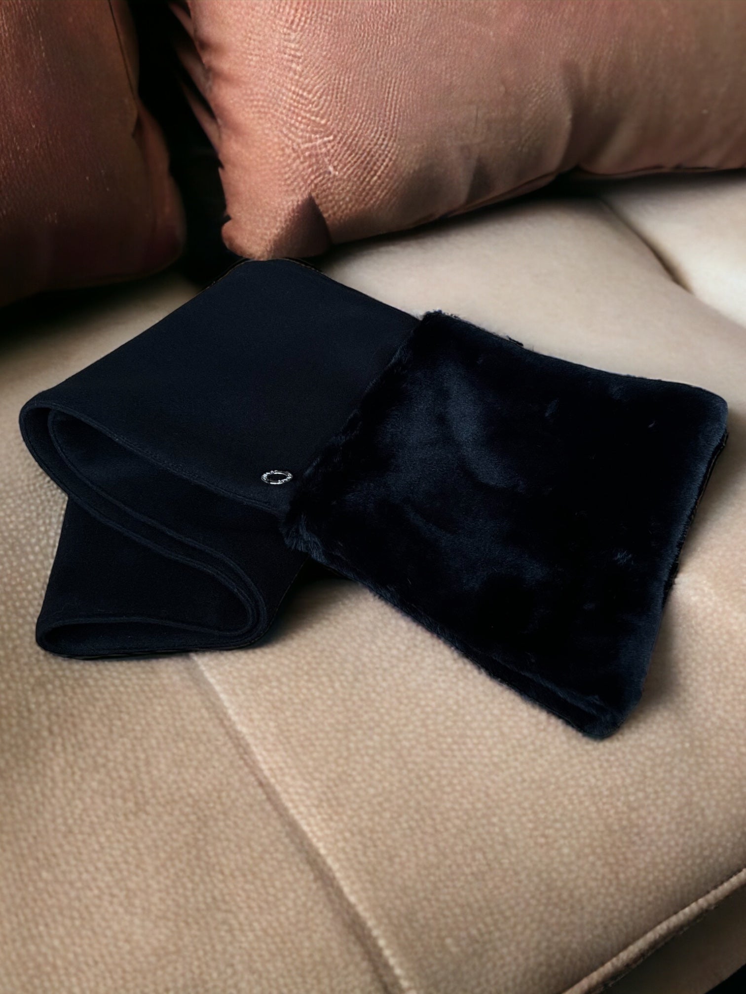 Scarf made of cashmere wool fabric , with super soft vegan fur ends for excellent comfort! Size: 160/25cm