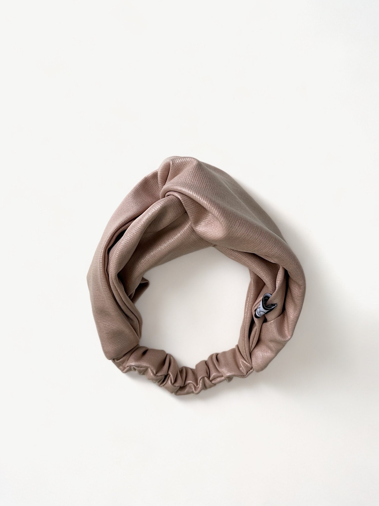 Turban Headband Made of shiny powdery creme fabric. One size.