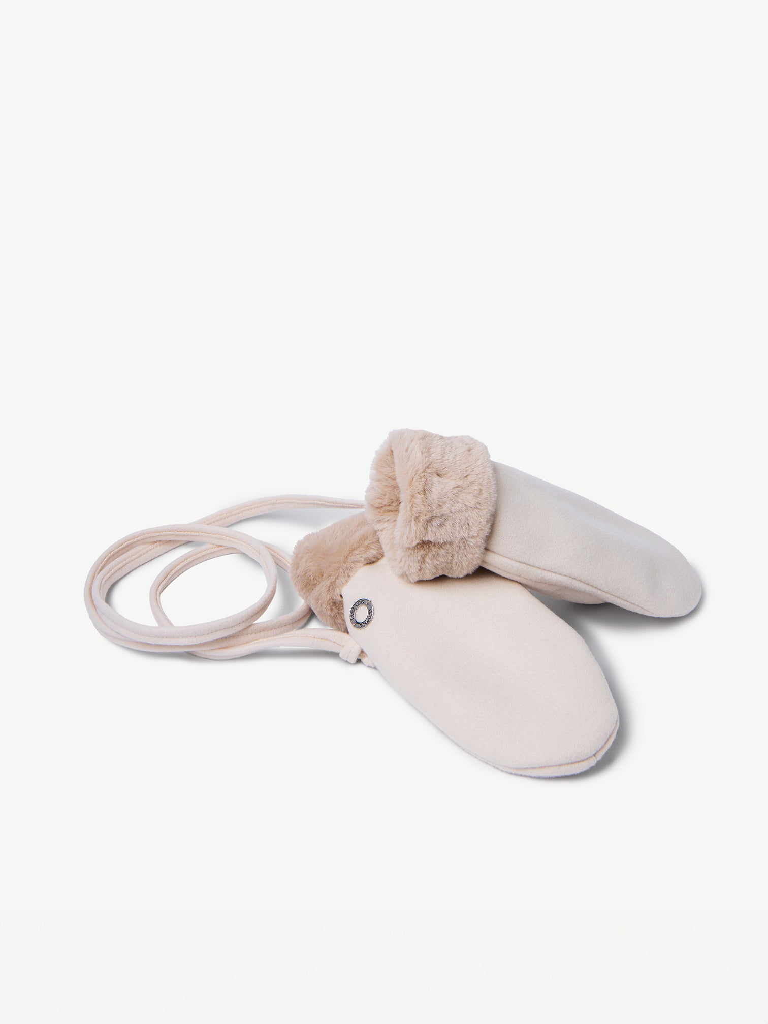 Mittens made of cashmere wool fabric , with super soft vegan fur interior for excellent comfort and warmth. Complete with removable cord.