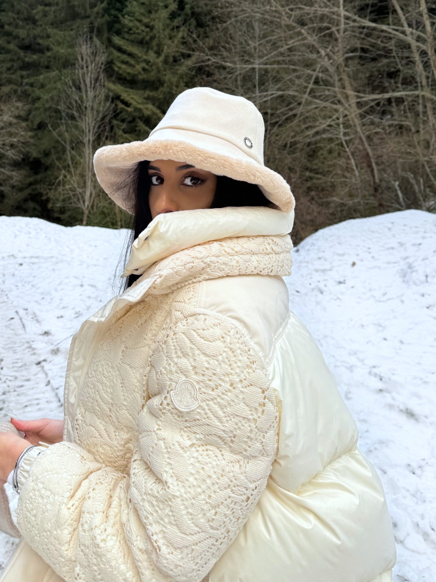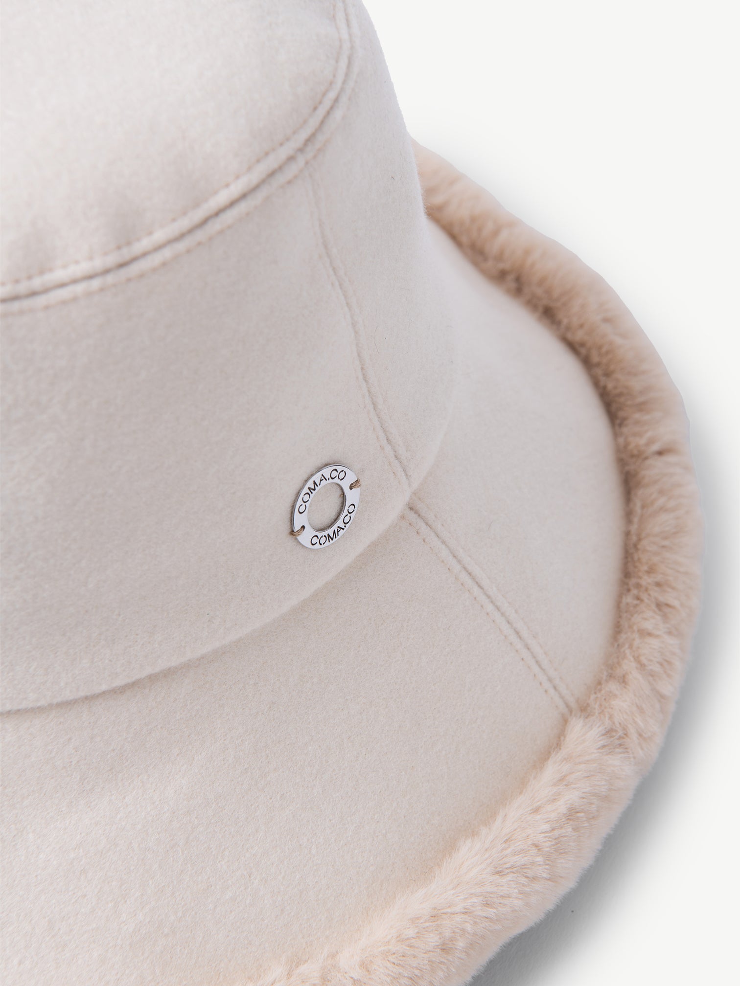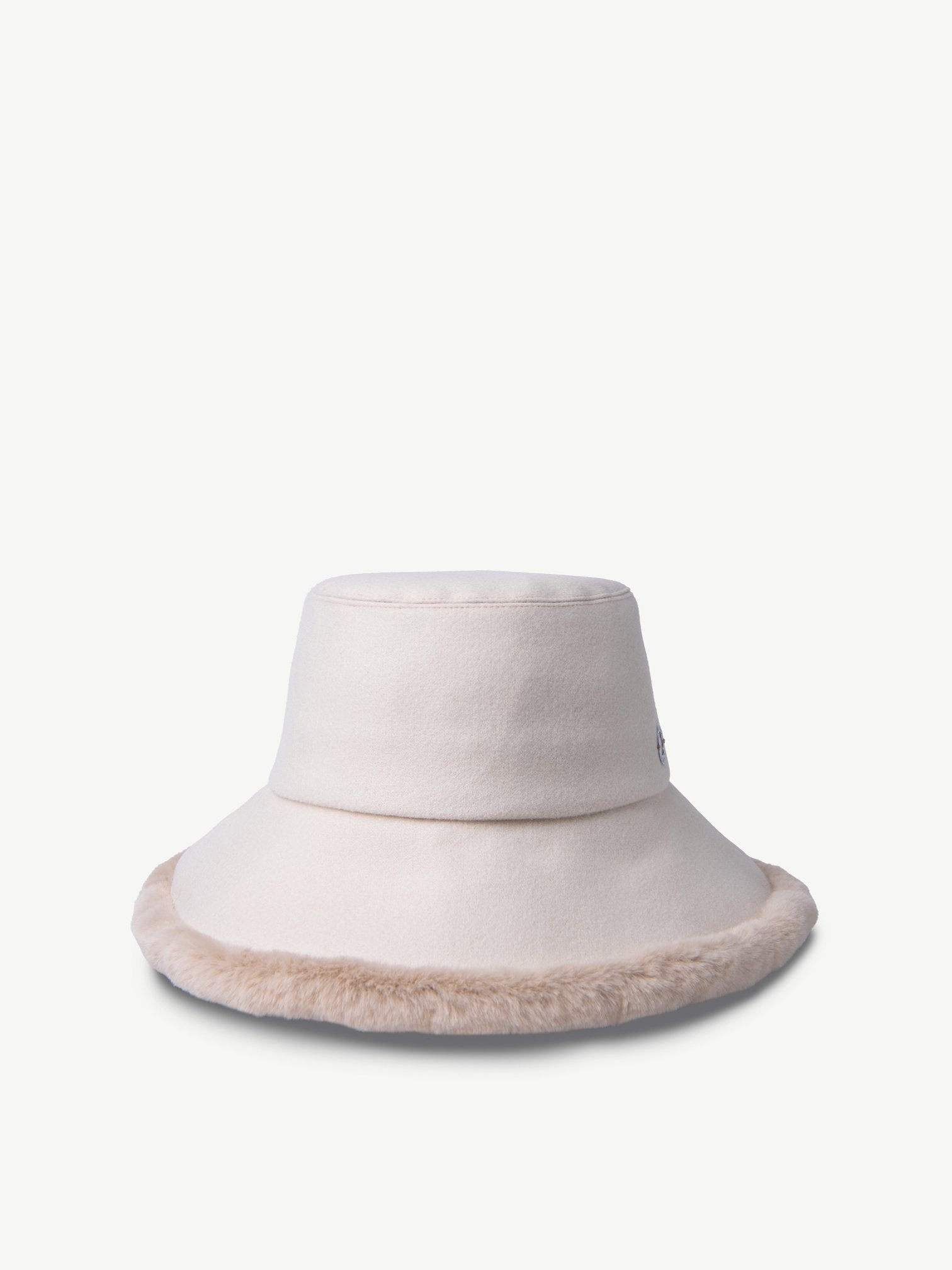 Combining Our signature bucket hat shape, cashmere wool fabric and nude shearling, this hat is timeless piece, which can be worn in multiple ways and occasions.