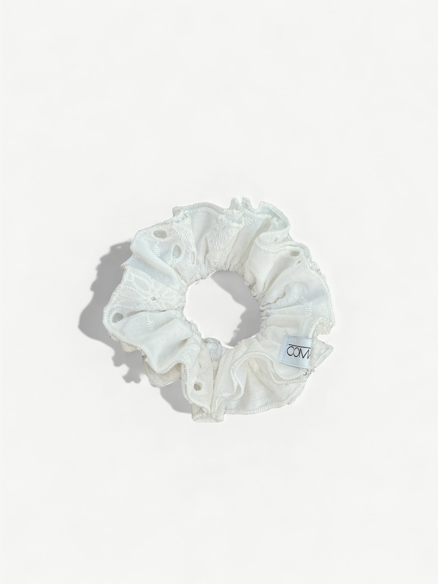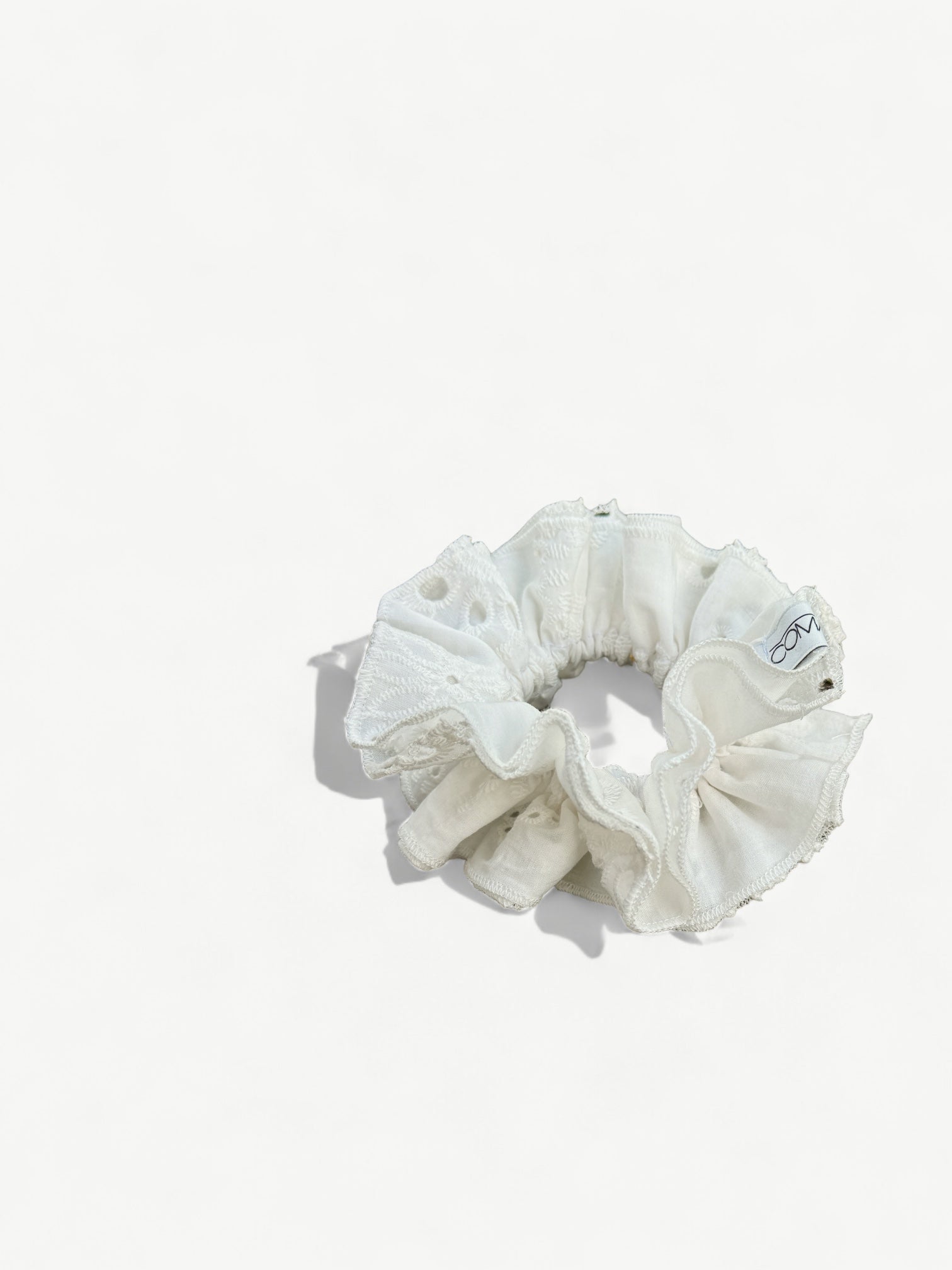 Limited Collection of medium sized scrunchies. Perfect must have accessories for evening looks and a great touch to your outfit in trending summer white lace